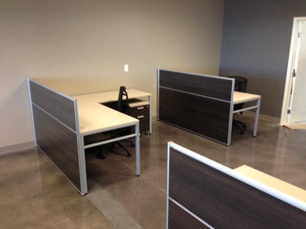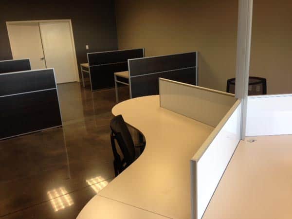 This project features Three-H office furniture and workstations (Multi Station OS) with elements of 9 to 5 seating (Brio chairs). We were fortunate enough to outfit the work space for this business. Above the business there is a loft available for clients and executives from out of town. We appreciate working with the interior designer, Kristie Putnam, on this joint venture project. Kristie helped us design the work space downstairs where she designed the loft above.